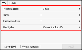 K ukládání e-mailových adres (e-mail, elektronický fax) a faxových čísel můžete použít následující metody: Uložte místa určení přímým zadáním informací o nich.