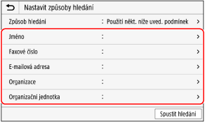 Vyberte možnost [Způsob hledání] a vyberte podmínky hledání.