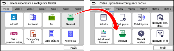Zobrazí se obrazovka [Změna uspořádání a konfigurace tlačítek].