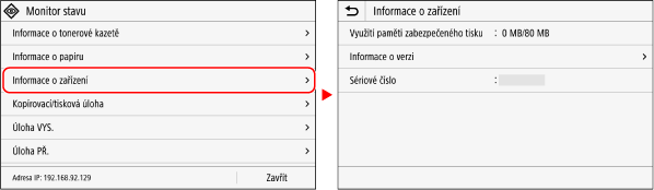 Ovládací panel používá dotykovou obrazovku. Pro ovládání tlačítek a položek zobrazených na obrazovce se jich dotkněte přímo prsty.