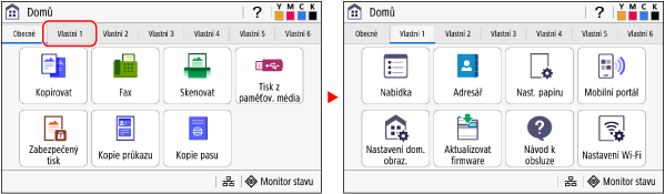Pokud klepnete na název položky nebo na tlačítko, můžete položku vybrat. Zobrazí se vybraná obrazovka nebo se provede vybraná funkce.