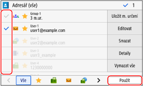 Pro zadávání míst určení z adresáře použijte obrazovku [Domů] nebo obrazovku skenování či faxování na ovládacím panelu.