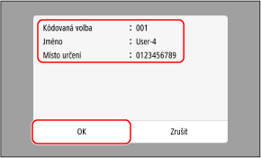 Při zadávání míst určení na obrazovce skenování nebo faxu můžete kromě použití seznamu míst určení zadat také číslo kódované volby.