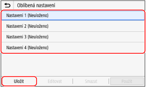 Nastavení můžete ukládat podle účelu a typu a můžete označit „Oblíbené nastavení“ pro funkce skenování, faxování a kopírování.