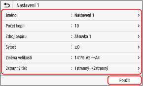 Vyberte nastavení, které chcete použít, a stiskněte tlačítko [Použít].