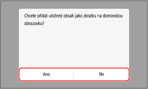 Pokud vyberete možnost [Ano], zobrazí se zpráva s informací o tlačítku zástupce. Stisknutím tlačítka [OK] přidejte tlačítko zástupce na obrazovku [Domů].