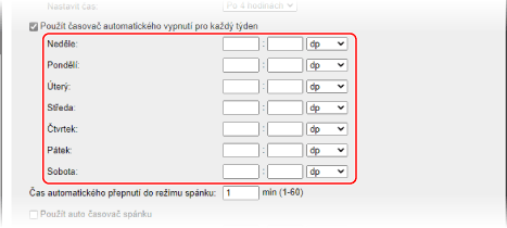 Zaškrtněte políčko [Použít časovač automatického vypnutí pro každý týden].