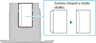 Obálky vložte tak, aby okraj s chlopní směřoval k levé straně zásuvky, jak ukazuje obrázek.