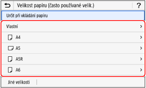 Stiskněte tlačítko [Jiné velikosti] a ze zobrazeného seznamu vyberte formát papíru.