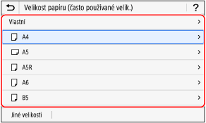 Velikost papíru zobrazenou na obrazovce v kroku 3 můžete změnit. Skrytí nepoužívaných formátů papíru