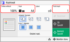 Pomocí číselných tlačítek zadejte počet kopií a poté stiskněte tlačítko [Zavřít].