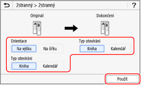 Podle potřeby nastavte orientaci originálu a typ otvírání a typ otvírání kopie.