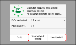 Když je skenování všech dokumentů dokončeno, stiskněte tlačítko [Spustit odesíl.] nebo [Náhl. a odeslat].
