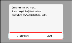 Pokud chcete zobrazit stav a protokol odesílání, stiskněte tlačítko [Monitor stavu].