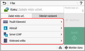 Pokud je místo určení při odesílání omezeno nastavením ověřování pro funkci odeslání, nemůžete zadat jiné místo určení. Podrobnosti získáte od správce.