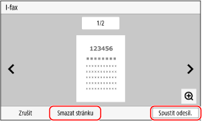 Pokud jsou přítomny stránky, které nechcete odeslat, otevřete je a stiskněte tlačítko [Smazat stránku].
