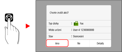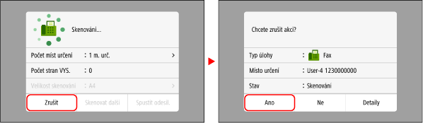 Odesílání faxu lze zrušit podle pokynů na obrazovce.