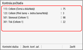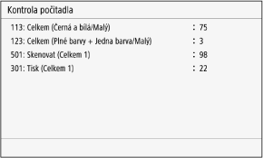 Můžete zobrazit počitadlo zobrazující celkový počet dosud zkopírovaných a vytištěných stránek černobíle a barevně.