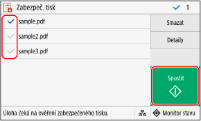 Zaškrtněte políčko zabezpečených dat k tisku a stiskněte [Spustit].