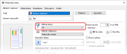 Zaškrtněte políčko [Přizpůsobit velikosti papíru] a v položce [Cílová velikost papíru] vyberte velikost papíru, na který se má tisknout.