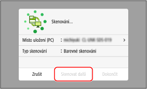 Chcete-li pokračovat ve skenování originálů, položte je na skleněnou desku a stiskněte tlačítko [Skenovat další].
