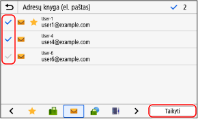 Patikrinkite, ar adresatai, kuriuos norite įtraukti į grupę, yra teisingi, tada paspauskite [Taikyti].