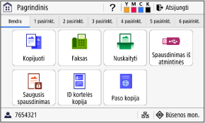 Nustatomas naudojamo popieriaus formatas ir tipas, taip pat užregistruojamas dažnai naudojamas popierius. Popieriaus formato ir tipo nurodymas |