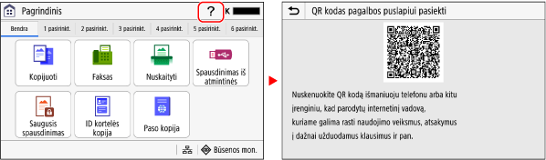 ]. Pagal numatytuosius parametrus ekranas [Pagrindinis] rodomas įjungus maitinimą ir iškart po paleidimo ekrano uždarymo bei iškart po prisijungimo. Ekranas [Pagrindinis]