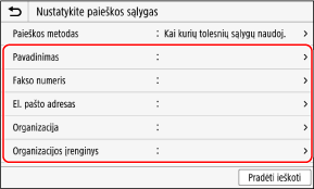 Jei vartotojo informacija tvarkoma LDAP serveryje, tos informacijos galite ieškoti valdymo skydelio nuskaitymo arba fakso ekrane ir taip nurodyti adresatą.