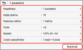Patikrinkite parametrus ir spustelėkite [Registruoti].