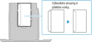 Galima spausdinti tik ant vokų priekinės (neklijuojamos) pusės. Dedami vokus, atkreipkite dėmesį į padėtį ir į viršų nukreiptą pusę.