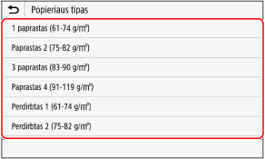 Pasirinkite popieriaus tipą, kuri norite užregistruoti.