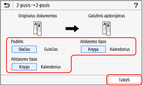 Pagal poreikį nustatykite originalo padėtį ir atvėrimo tipą, taip pat kopijos atvėrimo tipą.