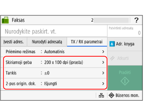 Skirtuke [TX/RX parametrai], sukonfigūruokite originalo nuskaitymo parametrus.