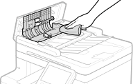Nušluostykite tiektuvą ir volelius, taip pat tiektuvo originalų nuskaitymo sritį, kad pašalintumėte prilipusius grafito miltelius ir dulkes.