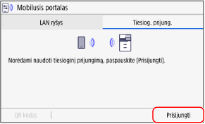 Kad prisijungtumėte nuskaitydami QR kodą, mobiliajame įrenginyje įdiekite Canon PRINT.