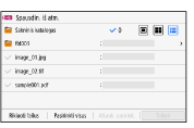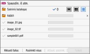 Kad pasirinktumėte visus rodomus failus, ekrano apačioje paspauskite [Pasirinkti visus]. Jei pasirinkti PDF ir vaizdo (JPEG arba TIFF) failai, rodomas failo tipo pasirinkimo ekranas. Naudokite šį ekraną, kad pasirinktumėte failo tipą, kurį norite spausdinti.