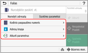 Jei siunčiant adresatas yra apribotas dėl siuntimo funkcijos autentifikavimo parametrų, negalėsite nurodyti kito adresato. Dėl išsamesnės informacijos kreipkitės į administratorių.