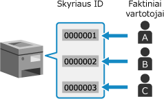 Šį būdą taikykite grupėje esantiems keliems naudotojams tvarkyti, kiekvienai iš grupių priskirdami po atskirą skyriaus ID.
