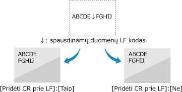 Jei pasirenkama [Ne], spausdinimo padėtis perkeliama į kitą eilutę tiesiog po gautu eilutės tiekimo (LF) kodu.