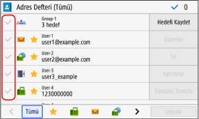 [Adres Defteri PIN'i] ekranı görüntülenirse PIN'i girin ve [Uygula] öğesine basın.