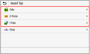 E-posta adreslerini (e-posta, I-Faks) ve faks numaralarını kaydetmek için aşağıdaki yöntemleri kullanabilirsiniz. Doğrudan bilgilerini girerek hedefleri kaydedin.