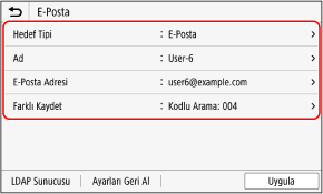 Bir LDAP sunucusu kullanıyorsanız hedefleri aramak için kullanılacak LDAP sunucusunu makineye kaydedin. LDAP Sunucularını Kaydetme
