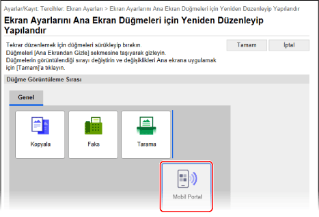 [Ana Ekran] üzerindeki düğmeleri yeniden sıralamak ve sekmeleri yeniden adlandırmak için bir bilgisayardan Uzak Kullanıcı Arabirimi'ni kullanabilirsiniz.