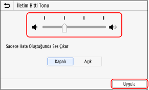 Ses düzeyini ayarlamak için kaydırıcıyı sola veya sağa sürükleyin ve [Uygula] öğesine basın.