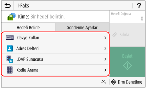 Cc ve Bcc hedeflerini belirtmek için [Adres Defteri] veya [Kodlu Arama] öğesini kullanın.