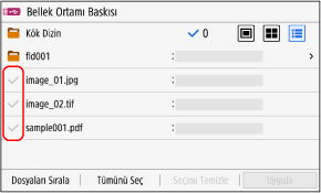 * Aynı anda hem PDF dosyalarını hem de görüntü dosyalarını (JPEG veya TIFF dosyaları) seçemezsiniz.