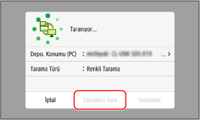Orijinalleri taramaya devam etmek için bunları plaka camına yerleştirin ve [Sonrakini Tara] öğesine basın.