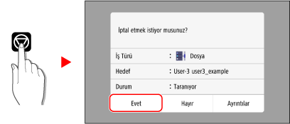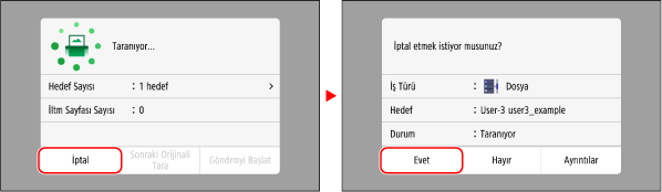 Tarama işlemini iptal etmek için ekrandaki talimatları takip edin.