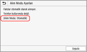 [Ayarlar yapılandırıldı.] mesajı göründükten sonra [Alım Modu Ayarları] ekranı görüntülenir.